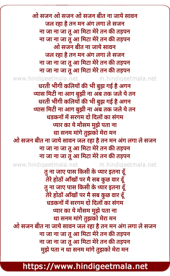 Lyrics of O Sajan Beet Na Jaaye Sawan - ओ सजन बीत ना जाये सावन