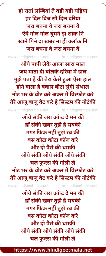 Lyrics of O Sanki Sanki - ओ संकी संकी