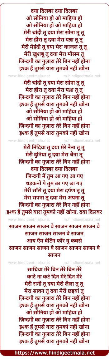 Lyrics of O Soneya Ho O Mahiya Ho - ओ सोनिया हो ओ माहिया हो
