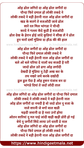 Lyrics of Oh Dhol Jagiro Da - ओह ढोल जगिरो दा ओह ढोल जगीरों दा