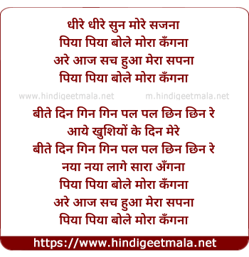 Lyrics of Oh Ho Dheere Dheere Sun More Sajna - ओह हो धीरे धीरे सुन मोरे सजना