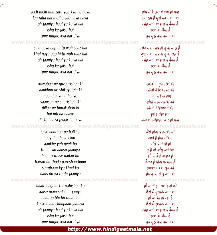 oh jaaniya haal ye kaisa hai ishq ke jaisa hai