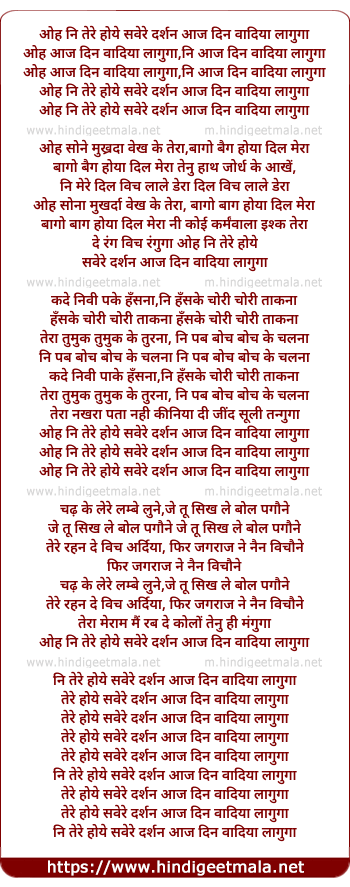 Lyrics of Oh Ni Tere Hoye Savere Darshan Aaj - ओह नि तेरे होये सवेरे दर्शन आज