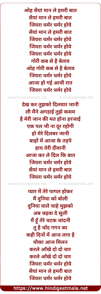 Lyrics of Oh Saiyan Maan Le - ओह सैयां मान ले