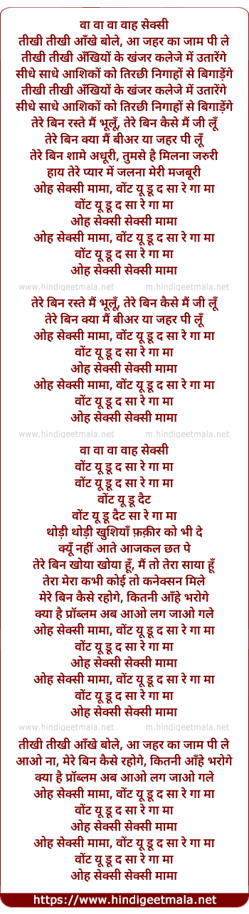 Lyrics of Oh Sexy Maama Want You Do The Saa Re Gaa Maa - ओह सेक्सी मामा वोंट यू डू द सा रे गा मा