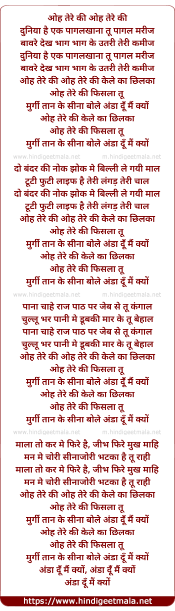 Lyrics of Oh Tere Ki - ओह तेरे की