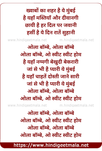 Lyrics of Olaa Bombay - ख्वाबों का शहर है ये मुंबई