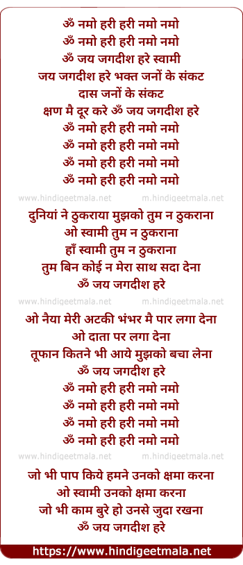 Lyrics of Om Jai Jagdish Hare (2) - ॐ जय जगदीश हरे (2)