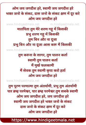 Lyrics of Om Jai Jagdish Hare (Abdullah) - ओम जय जगदीश हरे