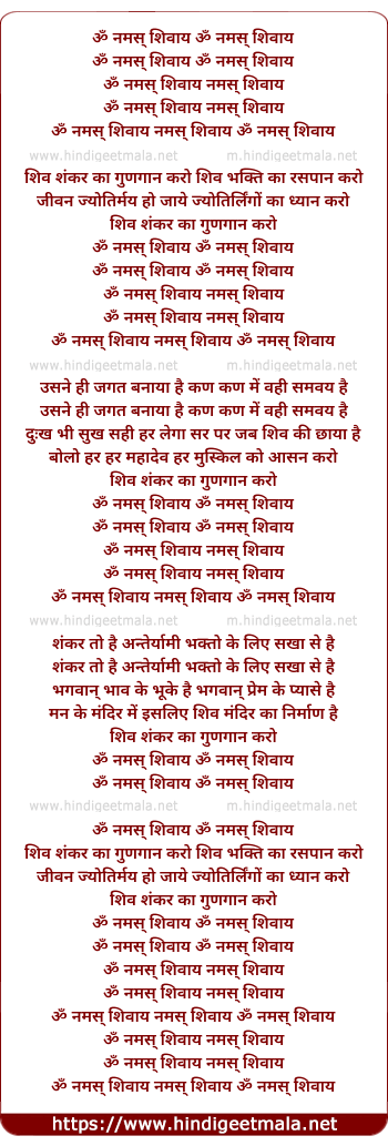 Lyrics of Om Namas Shivaay - ॐ नमस् शिवाय