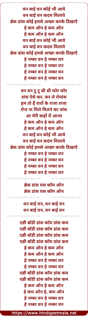 Lyrics of One By One - वन बाई वन