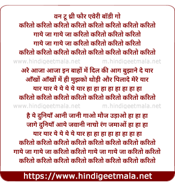 Poetic Translation - Lyrics of One Two Three Four Everybody Go - वन टू थ्री फोर एवेरी बॉडी गो
