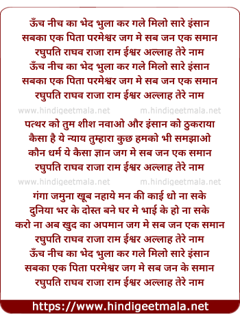raghupati raghav raja ram allah tere naam