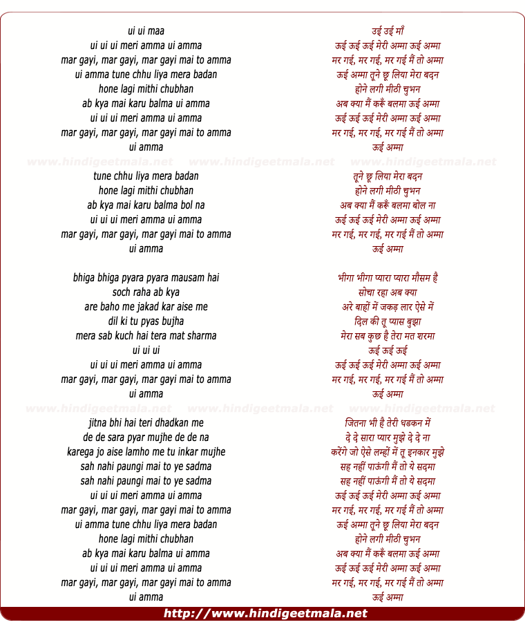 Lyrics of Ui Ui Ui Meri Amma - ऊई ऊई ऊई मेरी अम्मा