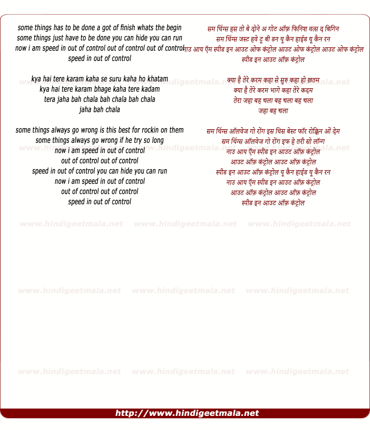 Lyrics of Out Of Control - आउट ऑफ़ कंट्रोल