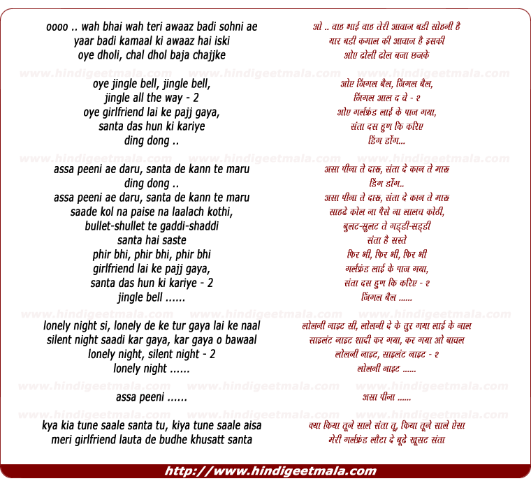 Lyrics of Oye Jingle Bell Jingle Bell Jingle All The Way - ओये जिंगल बेल जिंगल बेल जिंगल आल दा वे