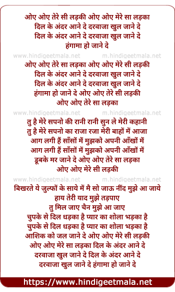 Lyrics of Oye Oye Tere Si Ladki - ओए ओए तेरे सी लड़की