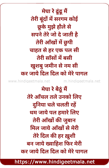 Lyrics of Paagal, Megha Re Dhundhu Main - मेघा रे ढूंढू मैं