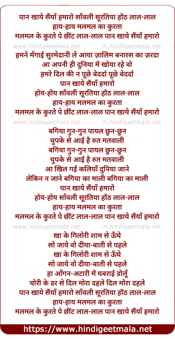 Lyrics of Paan Khaye Saiyan Hamaro - पान खाये सैंयाँ हमारो