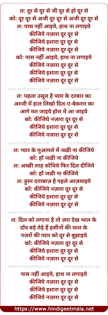 Lyrics of Paas Nahi Aayiye Hath Na Lagaiye - ल: दूर से दूर से जी दूर से हो दूर से