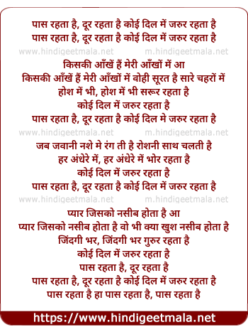 Lyrics of Pas Rehta Hai, Door Rehta Hai Koi Dil Me Jarur Rehta Hai - पास रहता है, दूर रहता है कोई दिल में जरुर रहता है