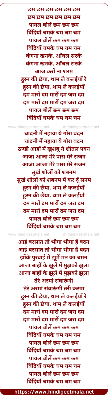 Lyrics of Paayal Bole Chham Chham - छम छम छम छम छम छम