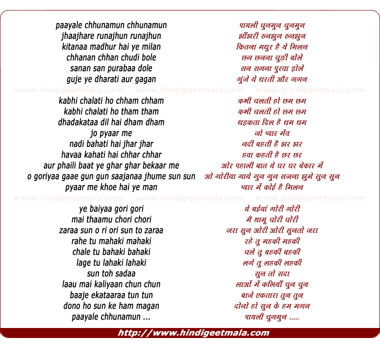 Lyrics of Paayalen Chhunamun - पायलें छुनमुन