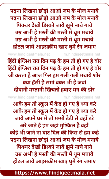 Lyrics of Padhna Likhna Chhodo Aao - पढ़ना लिखना छोड़ो आओ