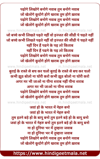Lyrics of Padhoge Likhoge Banoge Nawab - पढ़ोगे लिखोगे बनोगे नवाब