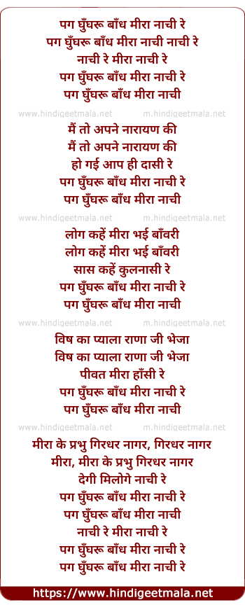 Lyrics of Pag Ghunghru Bandh Meera Nachi Re - पग घुँघरू बाँध मीरा नाची रे