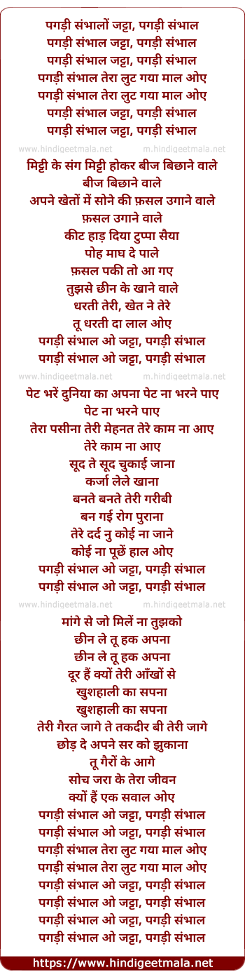 pagdi sambhal o jatta, pagdi sambhal