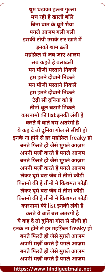 Lyrics of Pagle Aazam - पगले आज़म