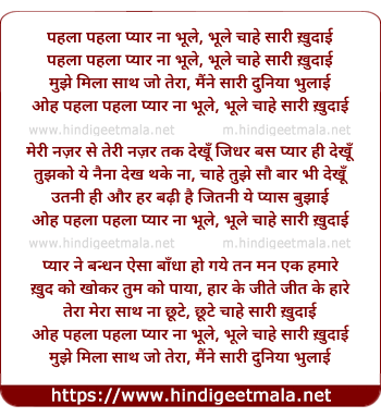 Lyrics of Pahala Pahala Pyar Na Bhule - पहला पहला प्यार ना भूले