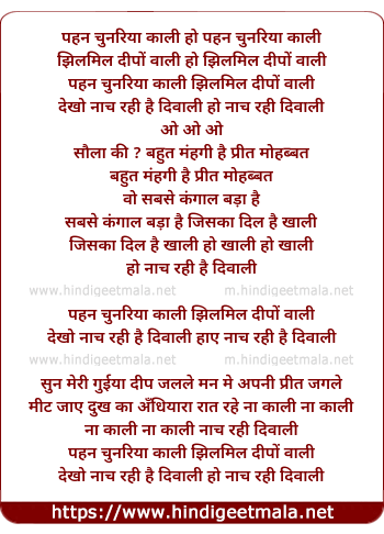 Lyrics of Pahan Chunariya Kali Jhilmil Deepo Wali - पहन चुनरिया काली झिलमिल दीपों वाली