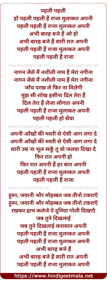 Lyrics of Pahli Pahli Hai Raja Mulaqat - पहली पहली राजा मुलाकात