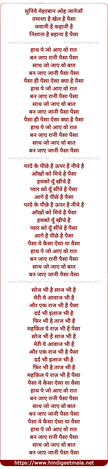 Lyrics of Paisa Hi Paisa - पैसा ही पैसा