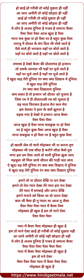 Lyrics of Paisa Paisa Paisa - पैसा पैसा पैसा