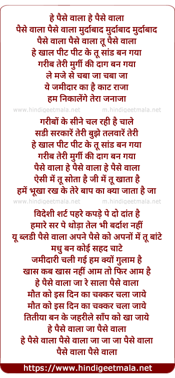 Lyrics of Paise Wala Murdabad - पैसे वाला मुर्दाबाद
