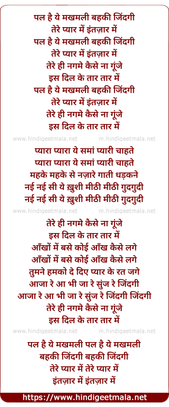 Lyrics of Pal Hai Makhmalii - पल है मखमली