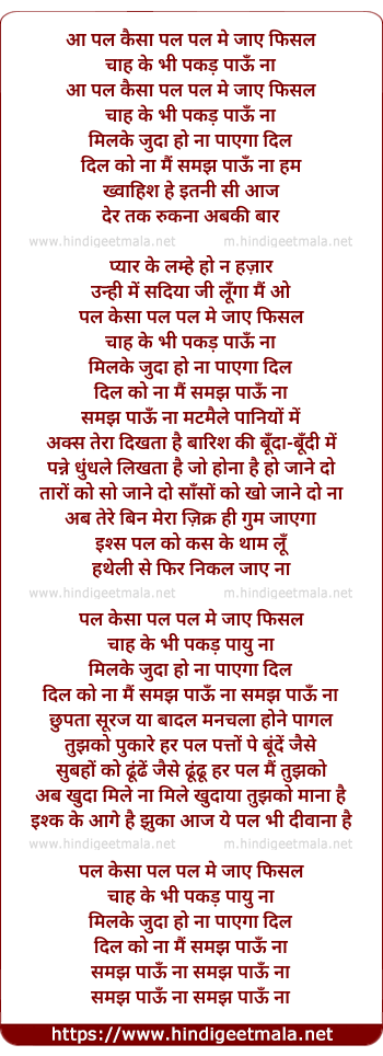 pal mei jaaye phisal chaah ke bhi pakad paaun na