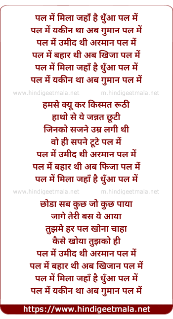Poetic Translation - Lyrics of Pal Me Milaa Jahan (Male) - पल में मिला जहाँ
