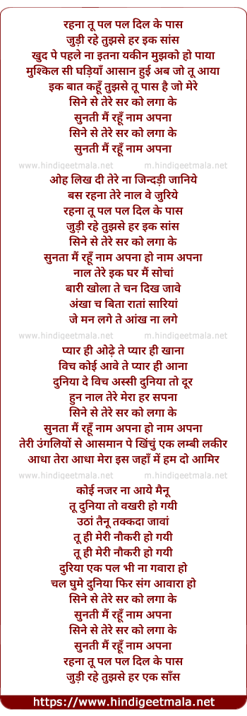 Lyrics of Pal Pal Dil Ke - पल पल दिल के