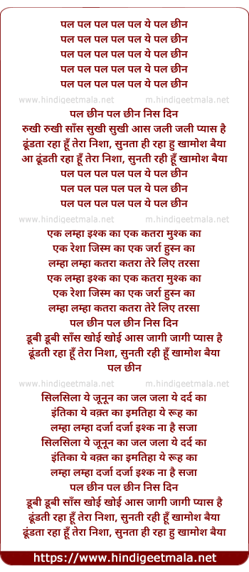 Lyrics of Pal Pal Ye Pal Chin - पल पल ये पल छीन