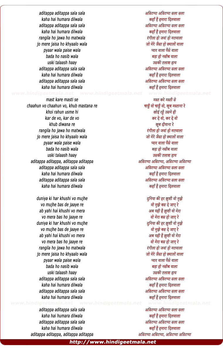 Lyrics of Palace On Wheels - अडिटप्पा अडिटप्पा सला सलाaditappa aditappa sala sala