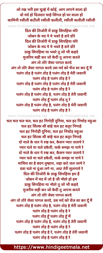 Lyrics of Palang Tod Hai - पलंग तोड़ है