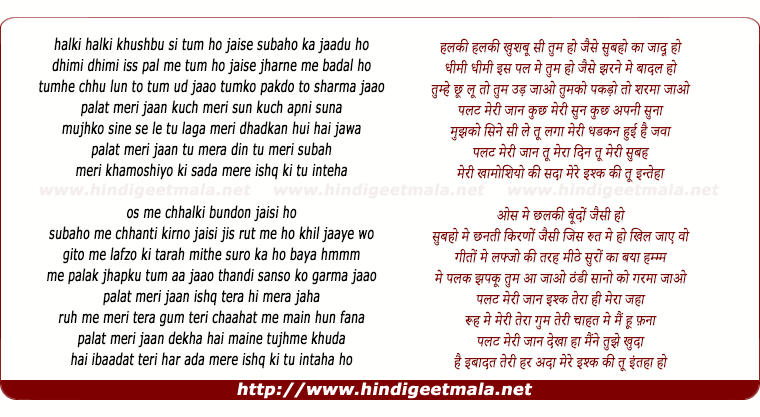 Lyrics of Palat Meri Jaan - पलट मेरी जान