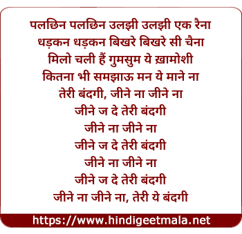 Lyrics of Palchhin Palchhin Ulajhi Ulajhi Ek Raina (Bandagi) - पलछिन पलछिन उलझी उलझी एक रैना