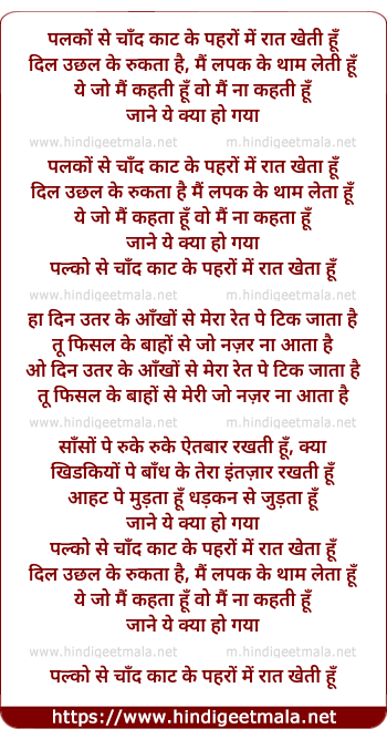 Lyrics of Palko Se Chand Kaat Ke Pehro Me - पलकों से चाँद काट के पहरों में