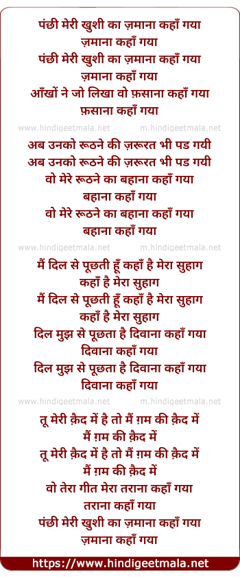 Lyrics of Panchhi Meri Khushi Ka Jamana Kaha Gaya - पंछी मेरी खुशी का ज़माना कहाँ गया