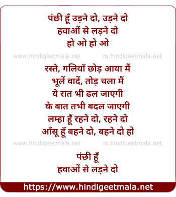 Lyrics of Panchhi Hoon - पंछी हूँ उड़ने दो, उड़ने दो